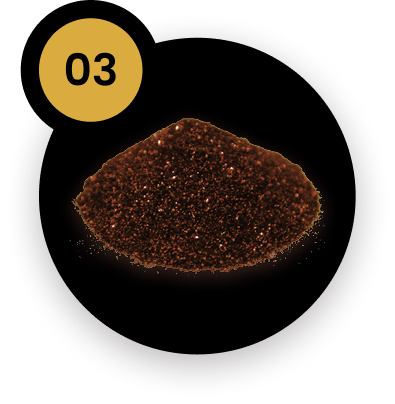 The coffee is roasted and acquires its flavor by processing the grain in ovens.